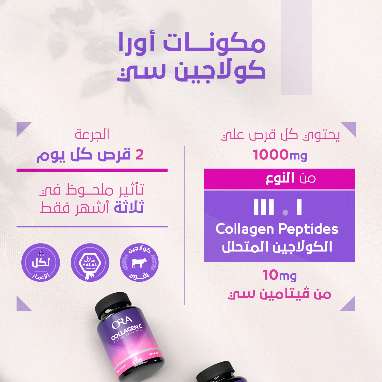Your Commitment to Pure Beauty – At Ora Collagen C, we believe in purity and potency. Our tablets are a testament to our commitment to quality, bringing you the dual benefits of Type 1 and Type 3 collagen alongside Vitamin C for enhanced synthesis. Suitable for both men and women, it's time to embrace a beauty solution that cares as much about your wellness as it does about your appearance.